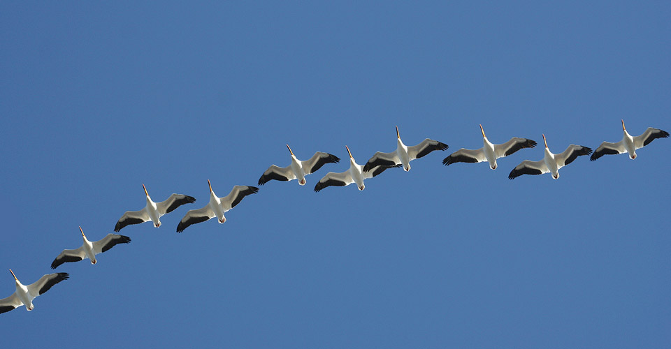 Le nuvole di storni o di passeri, gli impressionanti “delta” di anatre e oche, sono sicuramente una delle immagini più riconoscibili della migrazione. Volare in compagnia è un modo per ridurre i rischi e gli imprevisti del viaggio, in realtà la maggior parte degli uccelli migratori non si sposta in gruppo, molte specie come il pettirosso o il merlo, ad esempio, preferiscono volare individualmente.