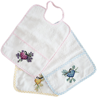 Ad amare la natura si comincia da piccoli, anzi piccolissimi. Bavagliolo da neonato con tenero disegno di un uccellino. Colore azzurro.