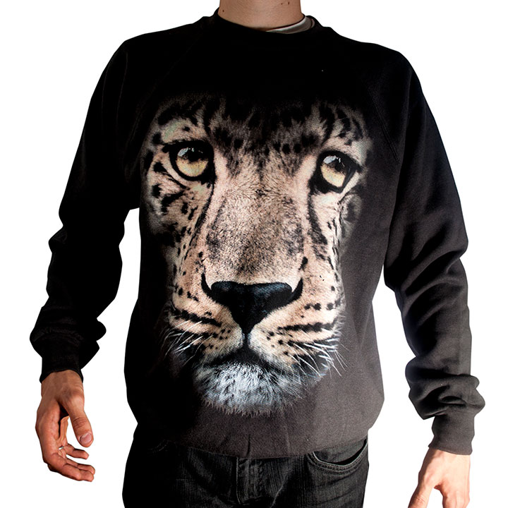 Felpa a maniche lunghe in cotone color antracite con stampa "Leopardo". Indossa il tuo amore per la natura.