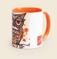 Tazza in ceramica interno e manico color arancio, illustrazione Gufetto lavabile in lavastoviglie