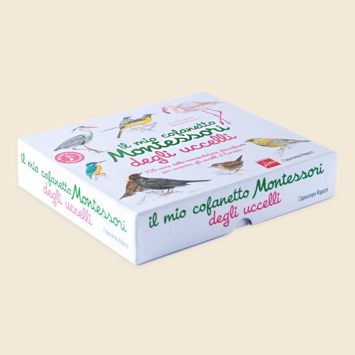 "Il mio cofanetto Montessori degli uccelli" illustrato da Ève Herrmann, testi di Roberta Rocchi