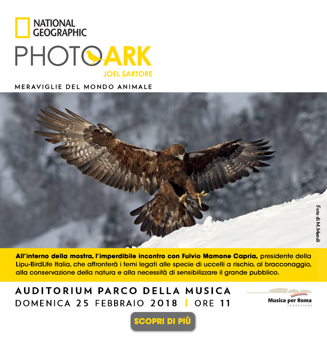 Fulvio Mamone Capria, presidente della Lipu, terrà una conferenza domenica 25 febbraio, alle 11, all'Auditorium Parco della musica a Roma, all'interno della mostra Photoark organizzata dal National Geographic.